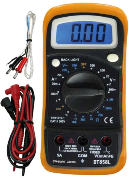 SW Stahl 32230L Multiméter - prémium minõség - kompakt és kézhezálló készülék, kontraszt-gazdag egysoros LCD-kijelzõvel, 19-állású forgókapcsolóval - Az automatikus tartománytúllépés- és polaritás-kijelzõ megbízhatóan figyelmeztet és segíti a lehetséges hibák elkerülését - A hõfokérzékelõvel -20°C és +120°C közötti hõmérsékletek mérhetõk. - felállít