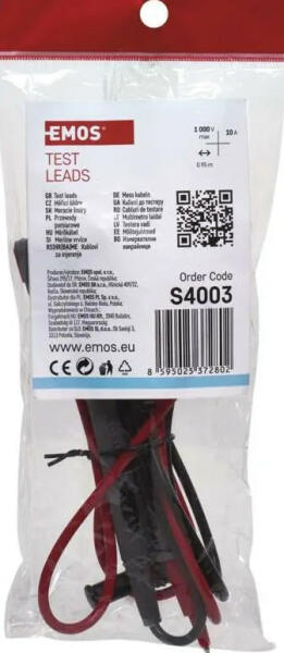 tekercs hossza 95 cm maximális terhelés 10 A, 1 kV, CAT III tippek cseréjének lehetősége nem szín piros, fekete értékesítési csomagolás tasak