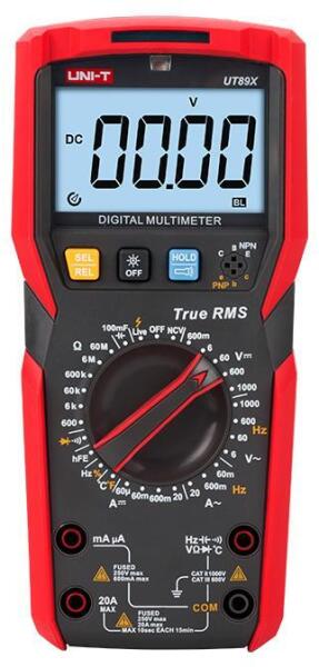 Tulajdonságok: - tápellátás : 9 V (6F22) - kijelző : digitális - háttérvilágítás : van - tartozékok : mérőzsinór, elem - egyenfeszültség : 200 mV / 2 V / 20 V / 200 V / 600 V - váltófeszültség : 200 V / 600 V - egyenáram : 20 A / 200 A / 2 mA / 20 mA / 200 mA / 10 A - ellenállás : 200 / 2 K / 20 k / 200 K / 2 M - kijelzőszámláló : 1999 - diódavizsgálat : van - szakad