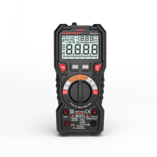Habotest HT118A digitális multiméter zseblámpával True RMS, NCV Habotest HT118A Universal Meter The Habotest universal meter is an indispensable tool that provides precise measurement of parameters such as voltage, continuity or temperature, among others. The backlit display makes it easy to use. The built-in flashlight will allow you to work also in dark rooms, and with a special stand you ca