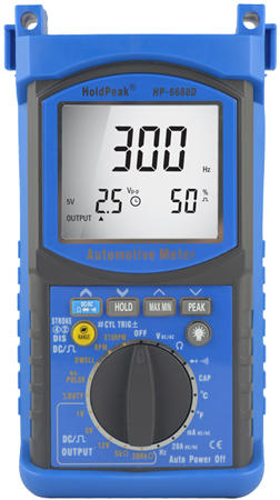 HOLDPEAK 6688D Gépjármű diagnosztikai műszer Gépjármű villamosságban használható, számos elektronikai mérésre alkalmas diagnosztikai műszer. Az általános multiméter funkciók (feszültség, áramerősség, ellenállás mérés) mellett a készülék alkalmas a... HOLDPEAK 6688D Gépjármű diagnosztikai műszer Gépjármű villamosságban használható, számos elektronikai méré