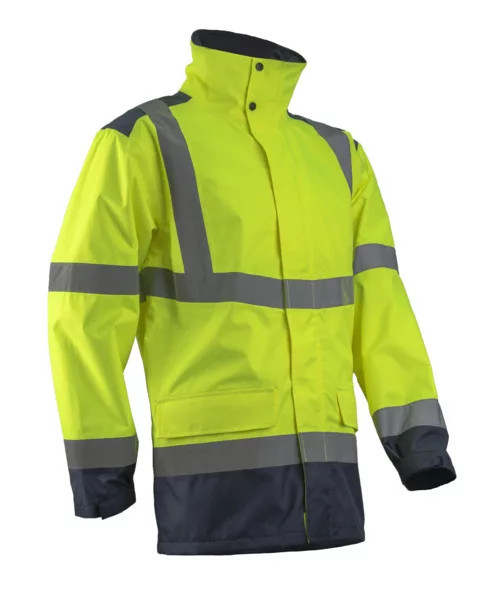 Coverguard 5KAJ160S-5KAJ16XXXL KAZAN KOMBINÁLHATÓ 2/1 HI-VIZ SÁRGA DZSEKI _S-XXXL poliuretánnal mártott 100% Oxford 300D poliészter alapanyag 280 g/m2 vastag 100% PES polár bélés a testen a karon 120 g/m2 vastag poliészter melegbélés + 60 g/m2 vastag 100% PES taftalapanyag az alapanyag vízállósága: 3000 mm vízálló varrások fényvisszaverő csíkok: 5 cm széles, 2 a testen, 2 a