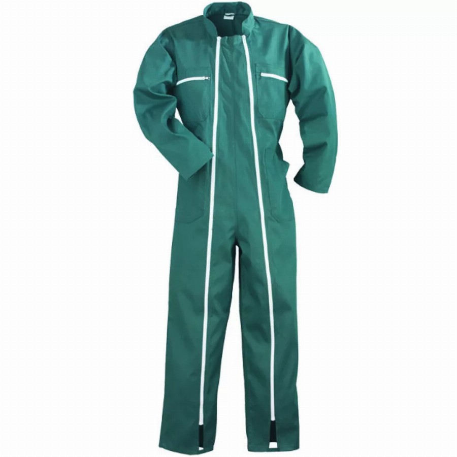 2ZIP ZÖLD OVERALL: • 245 g/m² kopásálló, nagy szakítószilárdságú anyag • 35% pamut, 65% poliészter • két húzózár teljes hosszúságban, a bokától a nyakig • ruha fölött is viselhető, könnyen kezelhető, kényelmes fazon • gumibetétes derékrész • két nagy oldalsó-, két zárható mell- és egy farzseb • passzé kötésű csukló és gumizott aljrész, melyek
