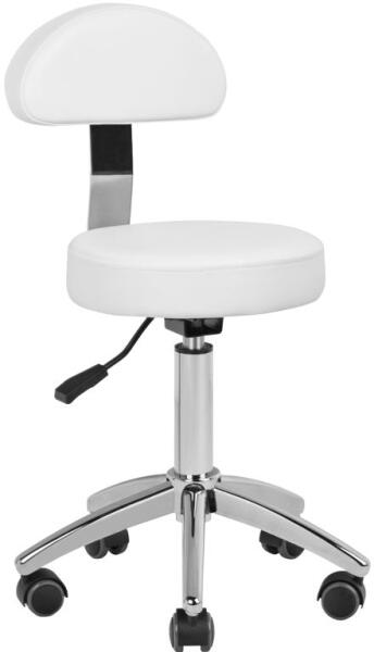 Háttámlás kozmetikai szék A háttámlás kozmetikai szék jellemzői Állítható magasság: 50-64 cm Ülőrész átmérője: 32 cm Súly: 7,5 kg Teherbírás: 110 kg Gázrugós emelőrendszer Levehető háttámla Ötágú alapzat Gumibevonatos kerekek