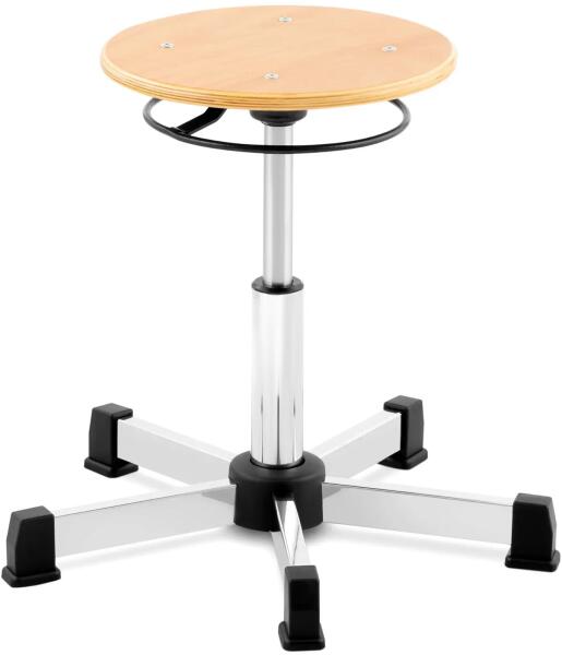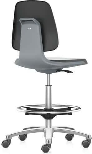 A magas munkahelyi szék alkalmas műhelyekbe, laboratóriumokba, stb. A formázott ülőlap a gyors felülésért hullámos csúszásgátló felülettel, poliuretán habból. Az ülőlap könnyen tisztítható, ellenálló a mechanikus sérülésekkel, szikrákkal, lúgokkal és gyenge savakkal szemben. Az állítható magasságú ülőlap 360°-ban elforog. Gázdugattyúval emelhető, amelyet m