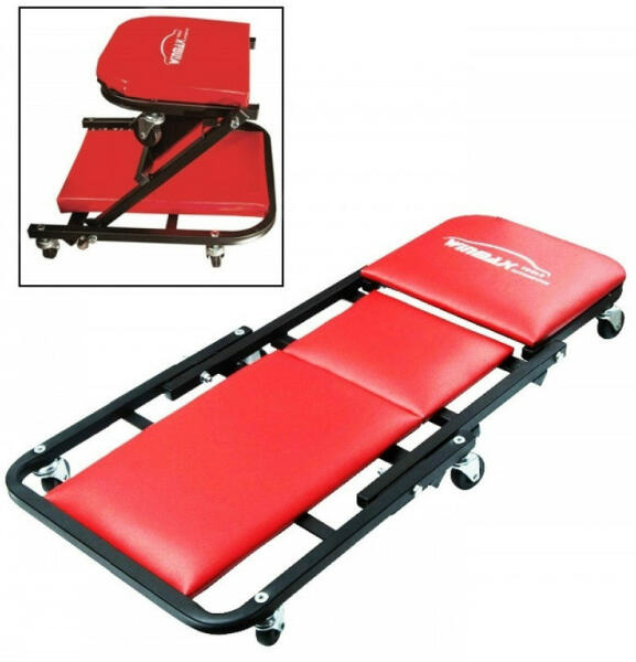 Gurulós aláfekvő 6 kerékkel, ami összecsukva, ülőpadként is használható. Sokoldalú és erős szerkezeti tulajdonságokkal bír. Anyaga: acél Piros bőrrel bevont szivacsos aláfekvő. Könnyedén átvariálható, ülőpadként is remekül funkcionál és a komfortot megfelelően biztosítja. Stiftekkel rögzíthető és variálható a kényelem érdekében. Max. teherbírás aláfekvő