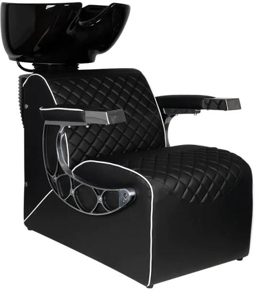 Stílusos fodrászmosó. Nagyon kényelmes, tökéletesen illeszkedik az elegáns fodrászat és fodrászszalonok belsejébe. Nagyon stabil és szilárd. A kárpit a legjobb minőségű fekete öko bőrből készült.