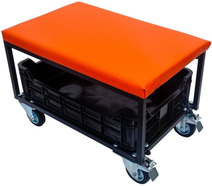 Minden szerelési tevékenységnél kiválóan alkalmazható szerelőszék. Nagy teherbírású fékezhető kerekekkel rendelkezik. Ülőfelülete kiváló rezgéselnyelő képességű rétegelt multiplex fa felület, vastag habszivacs réteggel és magas kopásállóságú textilbőr huzattal. Pórszórt acél váz gondoskodik róla, hogy a teherbírás és tartósság kiváló legyen. A termék