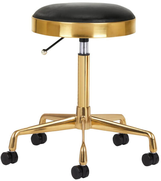 A gázrugós magasságállítással egyszerűen szabályozható az ülőrész magassága 49 és 67 cm között. A műanyag kerekek könnyű mozgathatóságot tesznek lehetővé. Az ülés teljesen elforgatható. Jellemzők: Hidraulikusan állítható magasság Ötágú alapzat Műanyag kerekek Arany színű alapzat