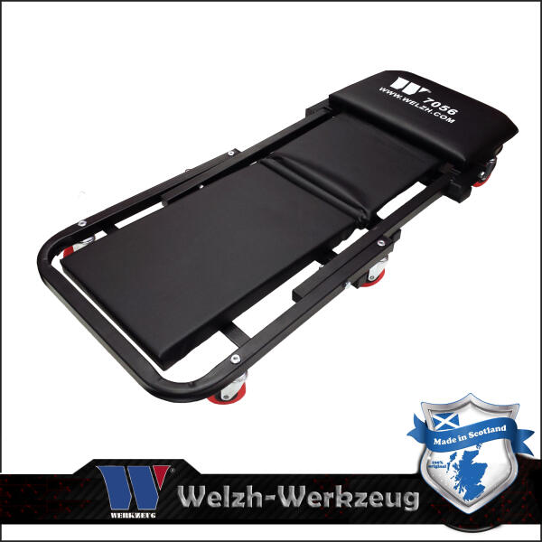 Welzh-Werkzeug Skót minőségben gyártott kényelmes puha tartós szintetikus bőrrel párnázott fekvő felület. Könnyű ergonomikus, és kényelmes robosztus kialakítása jellemző. Tulajdonságok: - Dupla golyóscsapágyakkal készített gurulós forgó kerekek - Tartós szintetikus bőrrel párnázott fekvő felület - Könnyen átalakítható ülő felületre és fekpad felületre is egy