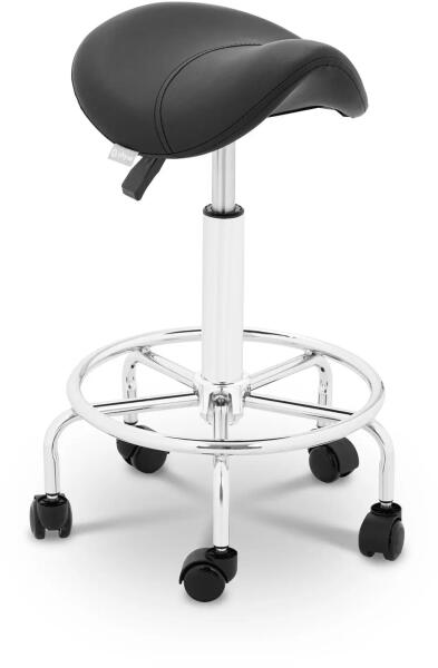 A physa termékcsaládhoz tartozó FRANKFURT BLACK nyeregszék, egy szék egy nyereg formájában - ahogy a név is már elárulja. Forgó, egyszerűen gördülő kerekekkel és különböző beállítási lehetőségekkel felszerelve, minden kozmetikai vagy fodrászati szalonba illik, pont akkor ha magassági beállítások, kényelem és stabilitás egyszerre szükséges. Az ergonomikus nyeregfo