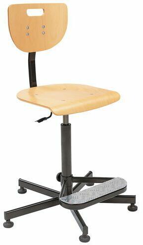 Werek magas ipari szék bükk furnér ülőlappal és háttámlával. Az ülésmagasság gázrugóval szabályozható. Ez a típusú munkaszék az anyagának köszönhetően nagyon könnyen karbantartható. A stabilitást csúszótalpas fém csillagtalp biztosítja. A műhelyszék teherbírása 120 kg. A láb kényelmét szolgálja az állítható magasságú, csúszásmentes támasz. A terméket