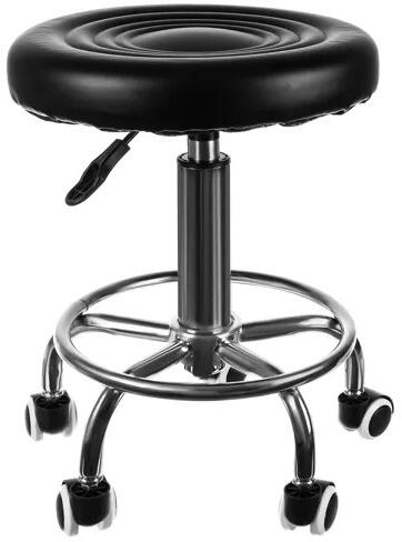 ülés színe: fekete anyaga: üléshuzat: PU, üléskitöltés: fa + szivacs, keret: vas + PVC + PP max. teherbírás: 150 kg ülésmagasság: 5 cm ülés átmérője: 32 cm lábtámasz kerék átmérője: 38 cm magasságállítás: 43-54 cm alapszélesség: 40 cm súlya: 2,77 kg súlya csomagolással: 3,2 kg KIEGÉSZÍTŐ KERÉK A LÁBTÁMASZTÁSHOZ - a zsámolyon további kerekek vannak felszer