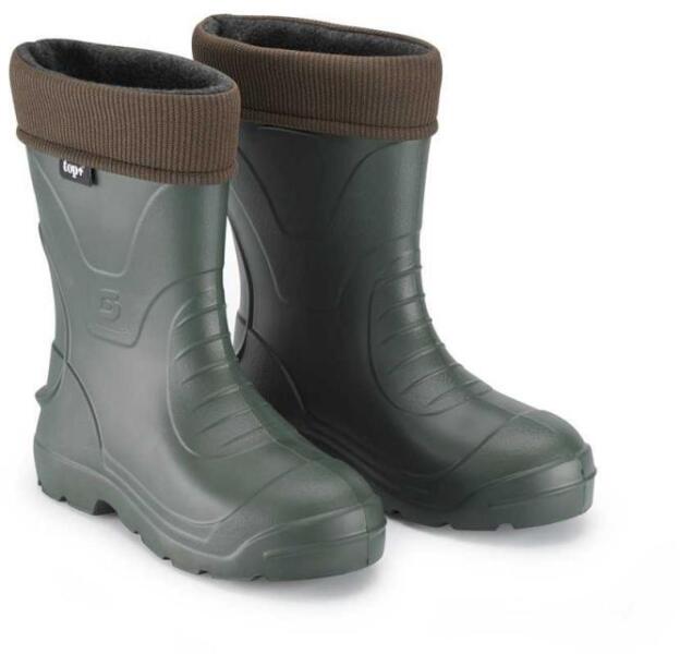 TOP MELDAL extra könnyű EVA hab csizma, rövid szárral és SRB csúszásbiztos talppal. Tulajdonságok:Anyaga: extra könnyű EVA hab. Talp: SRB csúszásbiztos, rugalmas, energiaelnyelő. Vízálló. Bélés: kivehető és mosható. Bélés nélkül akár nyáron is kényelmes viselet. Kiváló hőszigetelő képesség -30°C -ig. Könnyen tisztítható. Zöld szín. Méret: 41-48Csomagolás:1