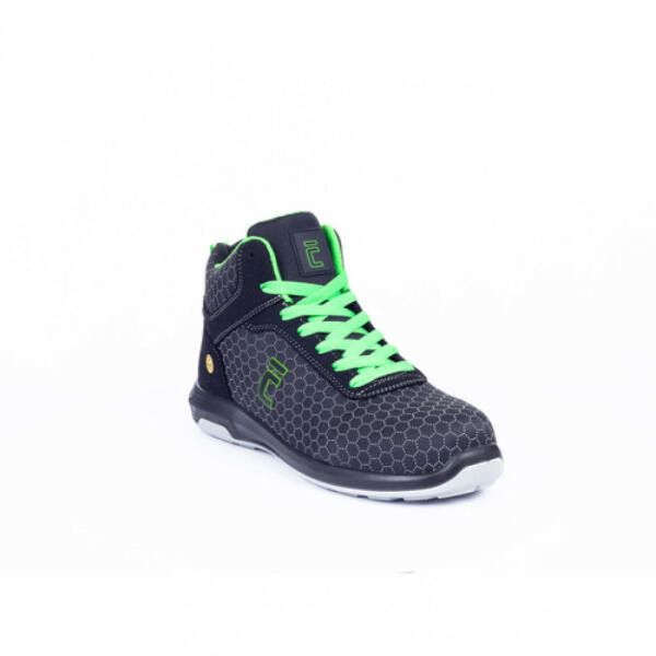 Fémmentes ESD biztonsági bakancs üvegszálas kompozit lábujjvédővel és "S" típusú többrétegű PES átszúrás ellen védő köztalppal. Magas szintű viselési komfort és tartósság a dupla sűrűségű PU/PU talpnak köszönhetően. A felsőrész innovatív PUTEK anyagból készült, amely könnyű, kopásálló, kiváló lélegzőképességű, és vízlepergető is egyszerre. Ideál