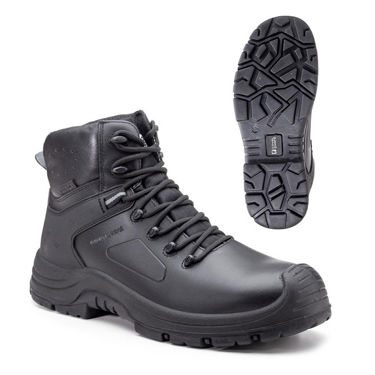 9ROCK10 ROCK S3 HRO WR SRC védőbakancs • fekete teljes színbőr felsőrész vízálló membránnal • kompozit lábujjvédő és flexibilis, fémmentes, átszúrás elleni textil talplemez • lélegző, nedvszívó és gyorsan száradó 3D hálós belső bélés • szivacsos szártető és nyelv és fém fűzővezetők • kivehető és szellőző perforált EVA talpbetét kényelmes szili