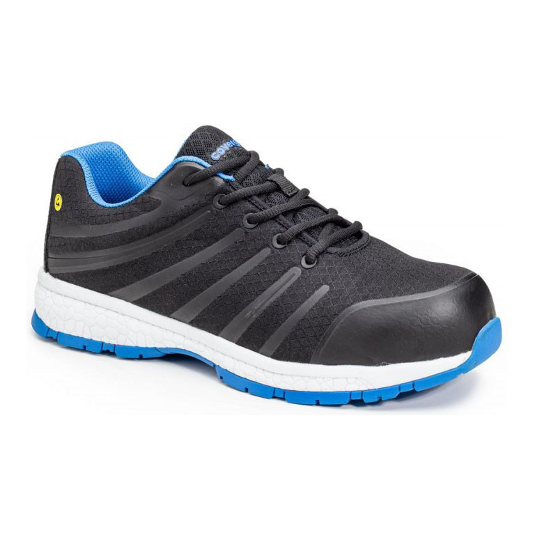 9GAL130 GALAXITE S1P SRC ESD védőcipő • szellőző hálós felsőrész TPU megerősítéssel • nagyon könnyű, kényelmes és rugalmas, teljesen fémmentes lábbeli fekete/kék színben • antisztatikus, olajálló, emelt szinten SRC csúszásbiztosságú, kétrétegű EVA / nitril gumitalp • kompozit lábujjvédő és textil talplemez, energiaelnyelő sarok, • nedvességszívó, szel