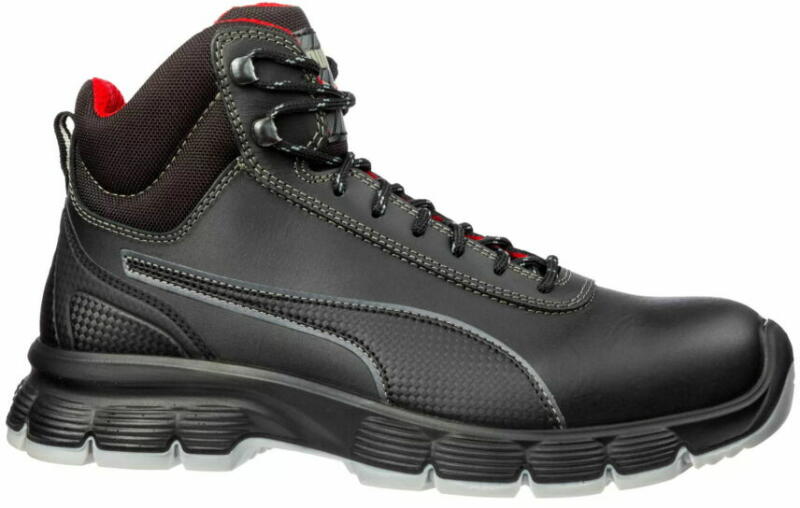 PUMA CONDOR BLACK MID S3 ESD SRC VÉDŐBAKANCS A Puma Condor Black Mid munkavédelmi bakancs a Puma Safety Rebound termékcsalád egyik legújabb tagja. Sima teljes bőr felsőrésszel készült. A védőcipőben acél orrmerevítő található és hajlékony kerámiaszálas talpátszúrás elleni védelem. ESD tulajdonságokkal rendelkezik. Speciális 3 rétegű PU talp szerekezete minden eddigin