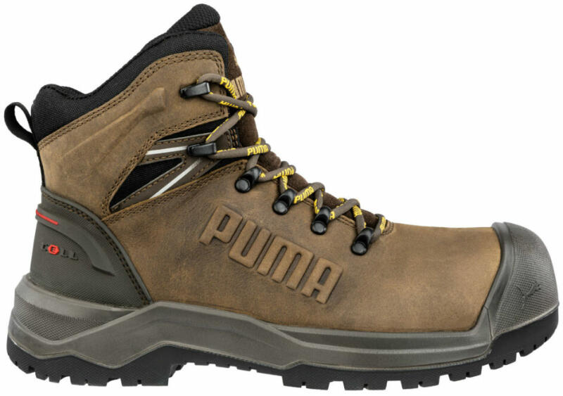 PUMA IRON HD BROWN MID S3S FO SR munkavédelmi bakancs Védelem: Üvegszálas lábujjvédő és rugalmas FAP® behatolás elleni védelem. Plusz: puhán párnázott és zárt porvédő, sarokfedél a további stabilitás és védelem érdekében, létrafogás. Felsőrész: kiváló minőségű olajozott teljes bőr Bélés: BreathActive funkcionális bélés Talpbetét: evercushion® MAX Talp: HEA
