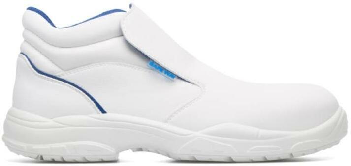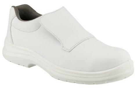 Fehér, bebújós védőfélcipő, vízlepergető és lélegző PU mikroszálas felsőrésszel Antisztatikus, olajálló, SRC csúszásbiztos, kétrétegű fehér PU talp Acél orrmerevítő, szivacsos szártető Energiaelnyelős sarok Fűzés nélkül, könnyen le-, és felvehető Szürke színű, légáteresztő és nedvességszívó 3D hálós bélés Lekerekített sarok a kényelmesebb vezeté