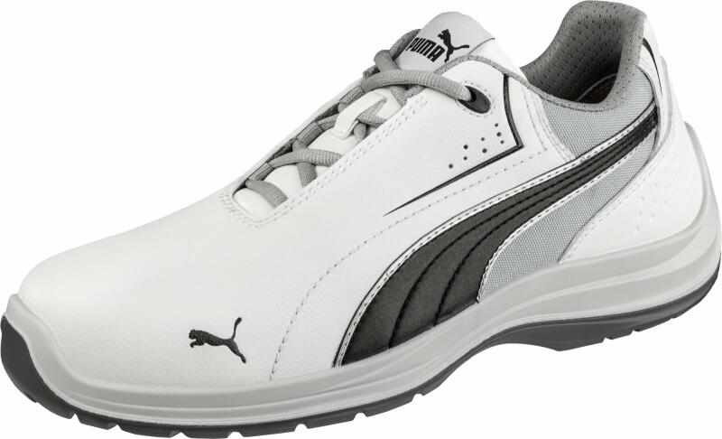 Puma Touring White Low S3 SRC munkavédelmi cipő Tartós, mikroszálas textil felsőrész. Üvegszálas orrmerevítő és hajlékony kerámiaszálas (FAP®) talpközép. BreathActive funkcionális bélés. Evercushion® plus talpbetét. MOTO PROTECT csúszásmentes DUO-PU-talp, MTSP csavarodásgátló rendszerrel és DRIVERS HEEL kerekített sarokrésszel. Fémmentes. Belső fűzőrendszer kiáll