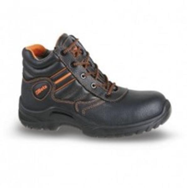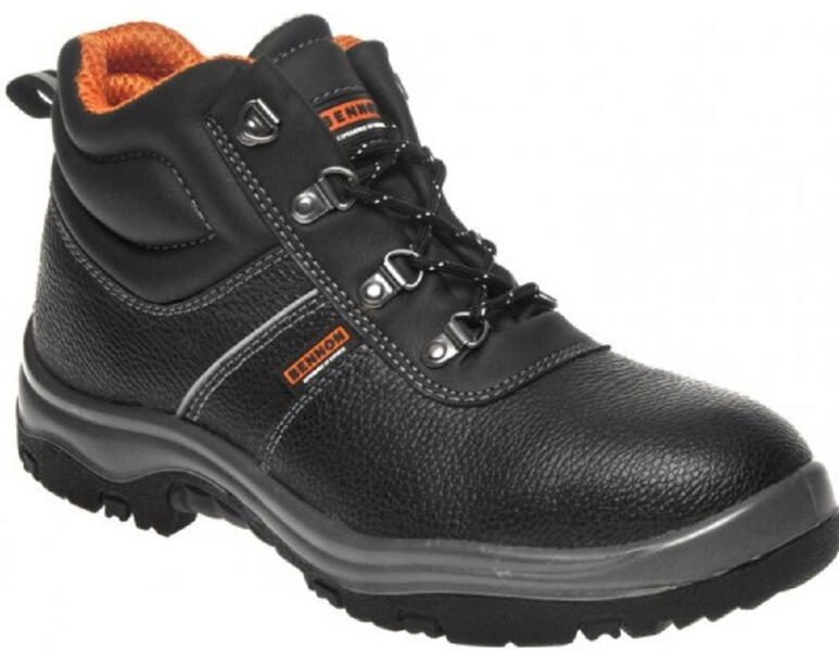 Külső anyaga kiváló minőségű, víztaszító marhabőr. Fekete színű. Kényelmes viselet a jól szellőző textilbélés és a párnázott szárrésznek köszönhetően, erős fűzőkampók, kopás- és dörzsölődés elleni védelem az orr-részen, csillapító hatású PU köztes talplemez, csúszásmentes talp.