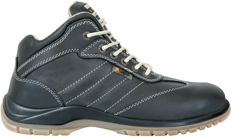 Full-grain bőr bokacipő, mérsékelten vízálló Orrvédő kompozit anyagból Áthatolásbiztos betét kompozit szálból Talp: Kompakt poliuretán Orrvédő: Polimer, 200 Joule Áthatolásbiztos betét: Kompozit szálból kerámia kezeléssel Talpbetét: Talpformát követő, GEL-betéttel Súly: 595 g EN 20345 S3 SRC