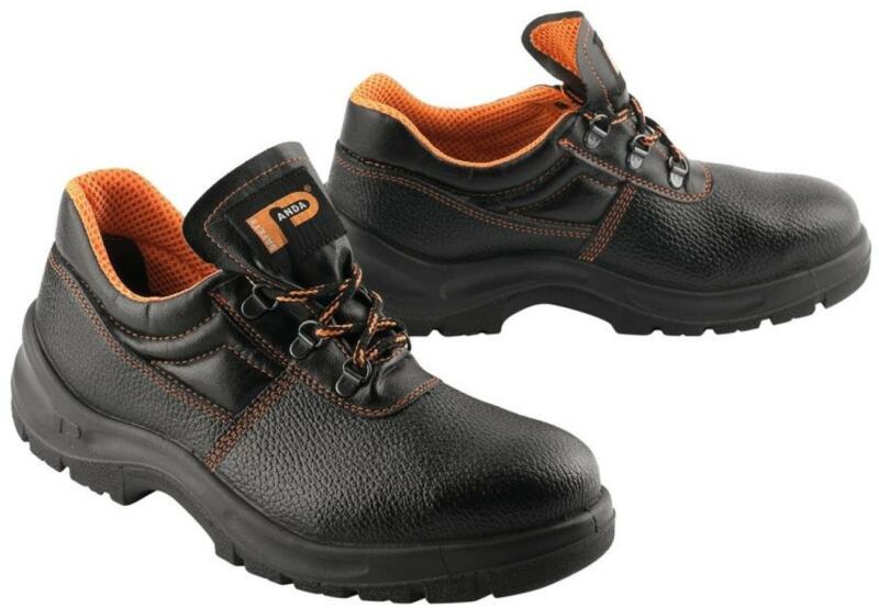 Teljes bőrből készült munkacipő acél spicc nélkül, narancssárga kiegészítőkkel, puha párnázattal, PU2D talppal. Ellenáll az olajoknak, üzemanyagoknak és a 110 °C-os kontakthőnek, antisztatikus. A 44 méretű cipő súlya 453 gramm. SZABVÁNY: EN 20347 (A biztonsági lábbeli megfelel az EN 20347 alapvető követelményeinek a munkacipőnél + zárt sarokfelületű + antisztatiku