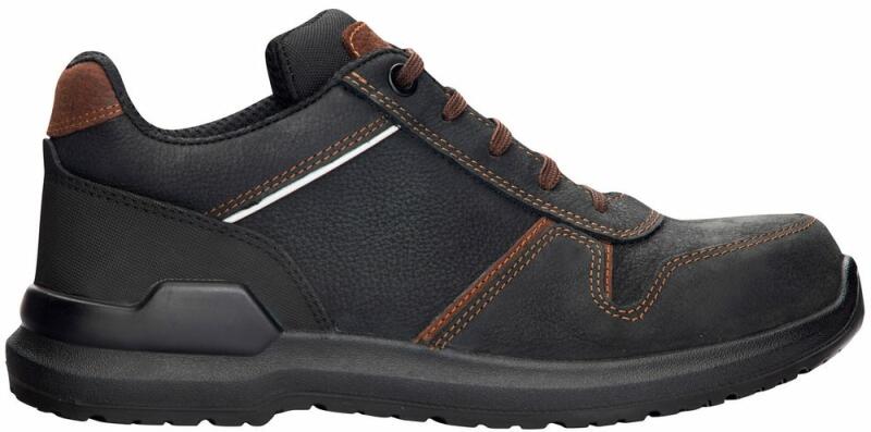 Stílusos bőr munkacipő modern kivitelben, úgynevezett "menedzser cipő" stílusban. A lábbeli nem rendelkezik lábujjvédővel, a felső része vízálló. Kialakítása nagyon elegáns a kontrasztos varrásoknak, valamint a barna és a fekete színek kombinációjának köszönhetően. A talp csúszásmentes, antisztatikus és PU/PU anyagból készül. Egy 42-es méretű cipő súlya 566 g.