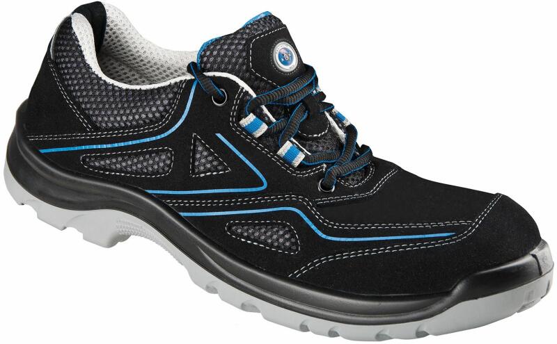 Minőségi ESD munkacipő sportos megjelenésben. Laminált orr a mechanikai ütés ellen és csúszásgátló talp. Az alacsony szárú cipő könnyű, fém elemek nélküli, és speciális munkatevékenységekhez is alkalmas. A légáteresztő anyag és a kellemes puha mikroszálas anyag kombinációja garantálja a maximális kényelmet és megakadályozza a hőszivárgást. A fekete és kék s