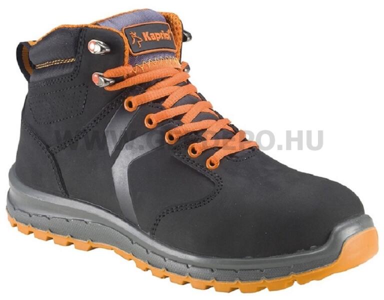 Kapriol Spencer munkavédelmi bakancs narancs/fekete S3-SRC A KAPRIOL márka a professzionális igényeket kielégítő munkavédelmi lábbelik széles választékát kínálja. S3- SRC védelmi képesség: Megfelelő formai kialakítás és lábujjvédő (200 J energiájú zuhanó-, 15kN nyomó tárgyak ellen) Zárt kéregrész és olajálló, csúszásmentes járótalp Antisztatikus tulajdonság