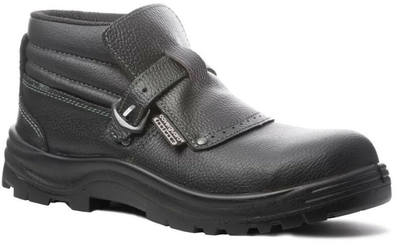 300196 cikksz. vízlepergető, fekete bőr bakancs hegesztési munkálatokhoz könnyű kompozit műanyag lábujjvédő, acélnál rugalmasabb, Wellmax fémmentes textil átszúrás elleni talplemez olajálló, antisztatikus, SRC csúszásmentes, kétrétegű PU/PU talp gyorscsattal ellátott lábfejvédő, nyelve kívül bőr, belül PU réteggel, lélegző nemszőtt Tybrelle bélés szivacsos bok