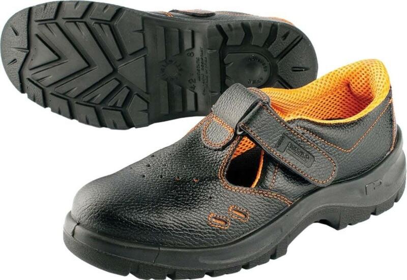 Biztonsági szandál nem fém orrvédővel és kompozit talpbetéttel átszúrás ellen, PU / PU csúszásmentes talppal, amely ellenáll az üzemanyagoknak, energiaelnyelővel a sarokban. Fém alkatrészek nélküli lábbeli - fémmentes.