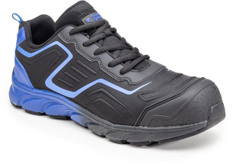 könnyű és kopásálló fekete/kék színű TPU (termoplasztik poliuretán) és szövet felsőrész antisztatikus, olaj- és hőálló, emelt szinten SRC csúszásbiztosságú, két színű és kétrétegű EVA / nitril gumi talp, energiaelnyelő sarok kompozit lábujjvédő leeső tárgyak- és textil talplemez talpátszúrás ellen dinamikus külalak és 100%-ban fémmentes nedvességszívó,