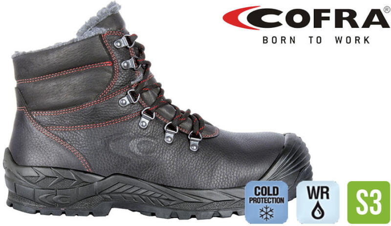 Téli Cofra munkavédelmi bakancs. Felső része: hidegnek ellenáll, vízlepergető. Bélés: lélegző szőrme+Thinsulate Talp: Cold Defender hőszigetelő talp Védelem: Kompozit kapli, APT talplemez (fémmentes) Szabvány: EN ISO 20345:2011 Hideg időjárásban is jól használható , komfortos Cofra téli munkavédelmi bakancs. A bakancs felső része vízlepergető , hidegnek is ellenálló
