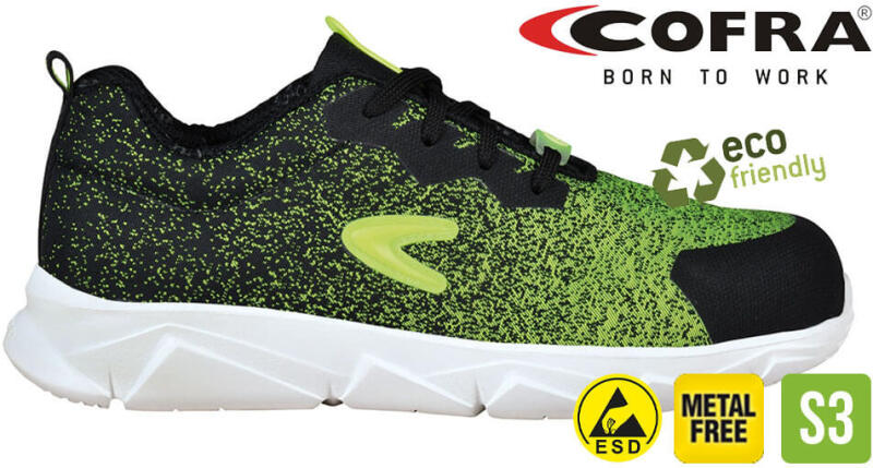 A Cofra gyártó legújabb és eddigi legkönnyebb termékcsaládjába tartozó munkavédelmi cipő, amely XL EXTRALIGHT® habosított talppal készül. Vízlepergető felsőrésszel készült munkavédelmi cipő, amely varrásmentes és 60%ban újrahasznosított anyagból készült. Védelem : Kompozit (fémmentes) lábujjvédő és 3. generációs PEP Plate talplemez ( fémmentes ) gondoskodik a