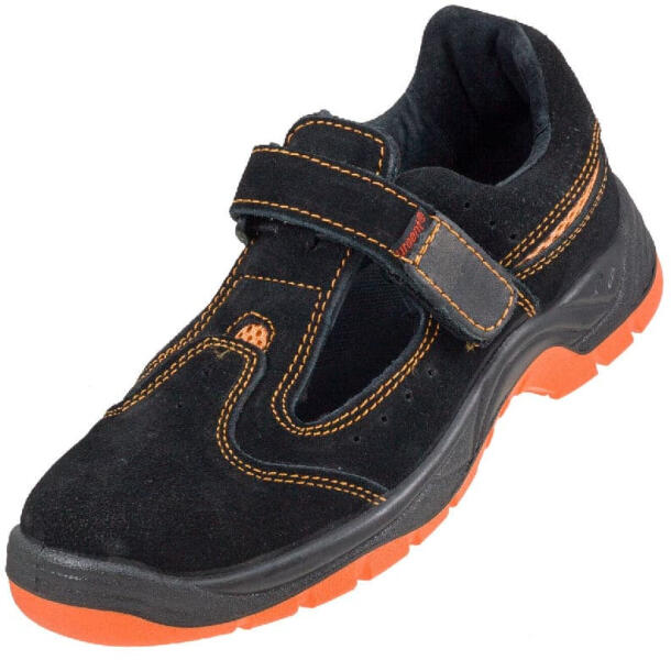 Urgent munkavédelmi szandál acél kapli orrmerevítővel. Kényelmes viselet, tépőzáras záródással. Nagy felületen jól szellőző típus. Ajánljuk első sorban beltérre vagy száraz időben kültérre is. Urgent Carlos SB Munkavédelmi Szandál Acél kapli orrvédelemmel ellátott munkavédelmi szandál. A kapli ellenáll 200J-os ütközésnek és 15kN nyomásnak. Teteje fekete velúrb