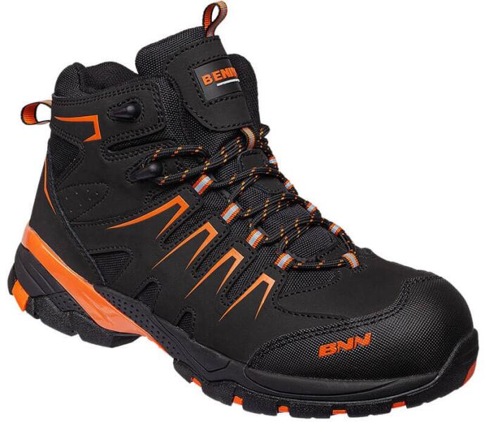 '- Felső anyag: nubuk bőr + nylon - Belső: Textil - Belső talp: anatómiailag kialakított 3 komponensű WARRIOR, rázkódás csillapító sarokpárna - Talp: Terrier PU/gumi csúszásgátló, antisztatikus, olajálló - Reflex elemek - Non-Metallic - Kompozit orrmerevítő, kevlár talpátszúrás elleni védelem - EN ISO 20345:2011 S3 SRC HRO Bennon Orland XTR S3 Fémmentes Bakancs - Felső