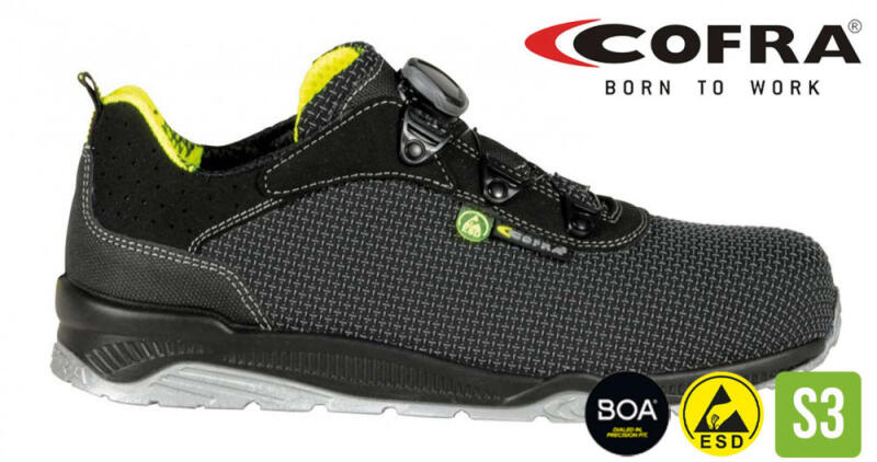 Divatos, modern, sportos munkavédelmi cipő, mely alkalmas viseletű ESD védett környezetben is! Modern techshell vízlepergető anyagú felsőrész, mely jól lélegző, S3-as védelmi képességű cipő. Orrában alumínium kapli található, talpában fémmentes APT átszúrás elleni talplemez található. BOA Fit fűzőrendszer megkönnyíti a mindennapos viselését, be és kifűzését a
