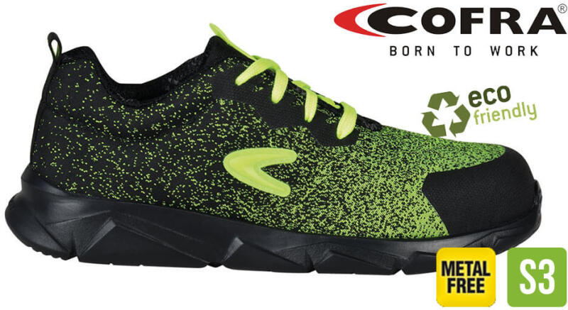 A Cofra legújabb és eddigi legkönnyebb munkavédelmi cipő modellcsaldája, mely XL EXTRALIGHT® habosított talppal készül. Vízlepergető munkavédelmi cipő, 60%-ban újrahasznosított varrásmentes felsőrésszel. Antibakteriális, jól szellőző belső bélés . S3-as védelmi képességű cofra munkavédelmi cipő, kompozit lábujjvédővel és PEP PLATE fémmentes talpátszúrás (tal