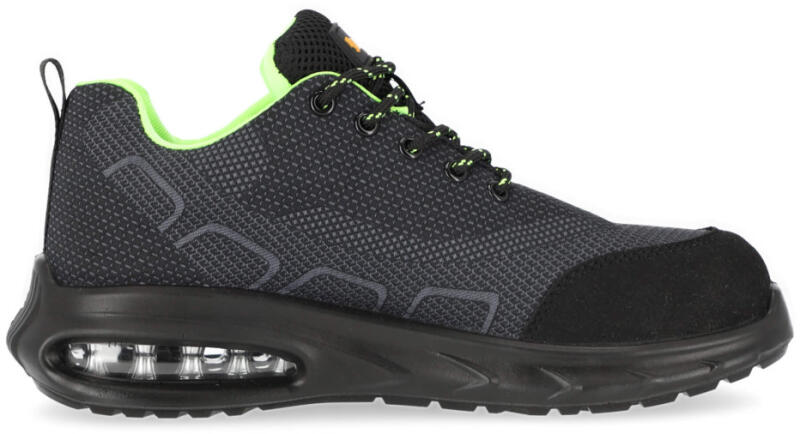 Légrugós sarokkal rendelkező, sportos megjelenésű, könnyű és hajlékony munkavédelmi cipő acél lábujjvédővel. Ideális beltérbe, meleg munkakörülmények között. Sportos, légtalpas munkavédelmi cipő SB védelmi minősítéssel. Védelem: SB védelmi képességű munkavédelmi cipő acél lábujjvédővel , amely ellenáll 200J ütésnek és véd 15kN erőhatású nyomás ellen