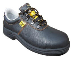 Kétrétegű sav-, zsír- és olajálló, csúszásmentes talp, 1000v váltakozó feszültségű áramütés ellen véd, kompozit műanyag orrvédő, talpátszúrás elleni védelem, energiaelnyelő sarok, vízálló felsőrész, széles lábfej-kialakítás, marhabőr belső bélés, 36-tól 48-as méretekben Kétrétegű sav-, zsír- és olajálló, csúszásmentes talp, 1000v váltakozó feszü