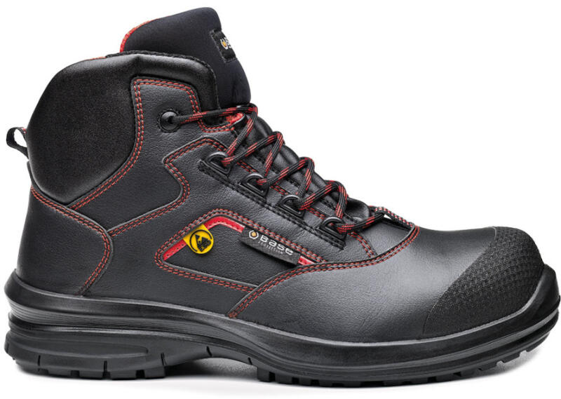 Base S3 munkavédelmi cipő magasabb vízálló képességű technikai textil felsőrésszel. Kompozit orrvédelemmel és kompozit talpátszúrás elleni védelemmel ellátott, ütéscsillapítás a saroknál. Antisztatikus és szénhidrogéneknek ellenálló egyedi kialakítású talp, a férfi és női lábnak megfelelő külön kapli szélességgel is választható. Javasolt felhasználási ter