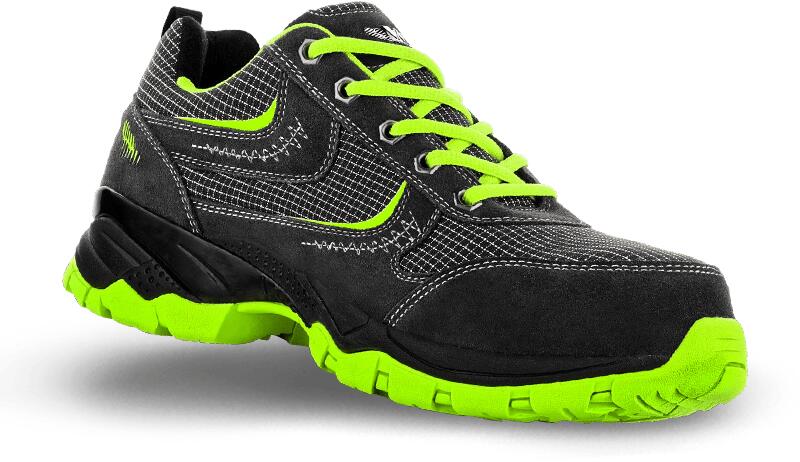 A felsőrész anyaga marha velúrbőr és textil kombinációja. A cipőben műanyag orrkapli és kevlár talpátszúrás elleni védőlemez van A cipő bélése lélegző Mesh szövet A talpbetét antisztatikus HI-POLY könnyű habosított poliuretán Mesh szövettel borítva A talp anyaga ragasztott EVA/gumi, mely antisztatikus, csúszásmentes és ellenáll az olajoknak Antisztatikus Energiaeln