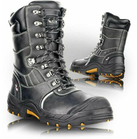 Biztonsági bokacsizma kompozit orrral és Kevlar talpbetéttel, fém alkatrészek nélkül, fényvisszaverő kiegészítők. Anyaga: felsőrész 1,8 - 2 mm-es kiváló minőségű marhabőrből, nyakörv sertésbőrből, nyelv 0,7 - 0,8 mm marhabőrből, robusztus PU védelem Méret: 38-49 Védettségi fok: S3 Felső anyag: Felső anyag: marhabőr, Nyakörv: sertésbőr, Nyelv: marhabőr Talp: PU