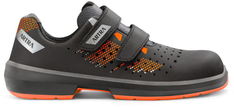 Sportos és modern kialakítású munkavédelmi cipő tépőzárral. A hidrofób mikroszálas nubukbőr felsőrész kiváló légáteresztést biztosít, a láb védelméről extra széles anatómiai kialakítású kompozit orrmerevítő és ERGOFLEX kevlár talplemez gondoskodik. 100% fémmentes kialakítás. Felsőrész A cipő felső része hidrofób mikroszálas 2.2 mm vastag NUBUCK PRO nubuk