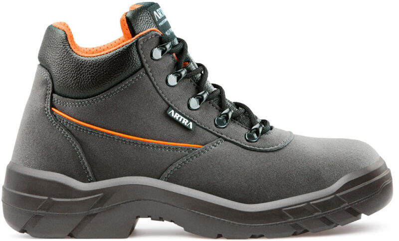Urgent Angelo 201 S1 munkavédelmi félcipő, fekete/narancs - 44 Felsőrésze Buffalo bivalybőr, minimum 1,6 mm vastag. Bélése szövet, párnázott a bokarész. Talpbetét: szövet. Talp: csúszásmentes, olajálló, antisztatikus, energiaelnyelő sarok, kétrétegű PU/PU, a külső talp keményebb, a belső puhább. Norma: EN 20345:2011. Az URGENT lengyel munkaruházati gyártó termékei sp