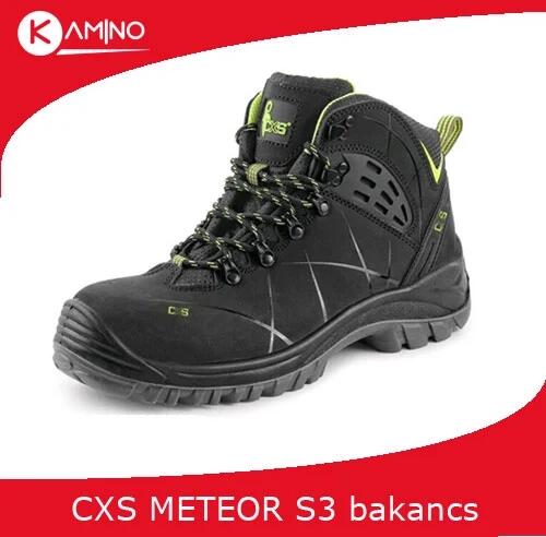 CXS Universe METEOR S3 munkabakancs fémmentes jellemzői: Felsőr sz: A 1,6-1,8 mm vastagságú nubuk bőr felsőrész ellenálló és strapabíró, védelmet nyújtva a lábnak a külső behatásokkal szemben. Belső: A légáteresztő és kopásálló textil belső kényelmet és szellőzést biztosít a hosszú munkanapok során is. Talpbetét: A saroknál elhelyezett puha gél talpbetét kiv