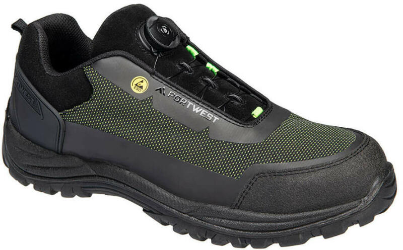 Sportos munkavédelmi cipő Hőálló külső talppal, ESD tulajdonságokkal és kiváló csúszásállósággal rendelkezik. Innovatív huzalos fűző rendszerrel készült a gyorsabb befűzés és a gyors kioldás érdekében. A felsőrész nagy teherbírású, vágásálló - A-szintű - textilből készült, nagy kopásállóságú orrborítással és erős TPU hátsó résszel kombinálva. Sz