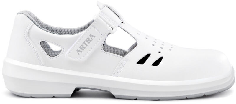 Kényelmes munkavédelmi szandál kompozit orrkaplival. Kiváló választás egészségügyi és élelmiszeripari dolgozók számára. 100% fémmentes kialakítás. Felsőrész A cipő felső része hidrofób mikroszálas 2.2 mm vastag MICRO PRO bőrből készült, mely kiváló ellenállóképességet biztosít, valamint jó légáteresztő képességgel rendelkezik, így egész napos viselésre